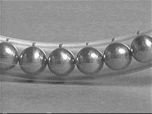 It consists of a hollow 1-in. dia. aluminum tube, 19 1/4 in. in dia., that's filled with hardened chrome steel balls suspended in a lubricating fluid. To install, you simply re-move the wheel, slip the balancer over the lug nuts, and replace the wheel. The spinning balls then balance all uneven motion.