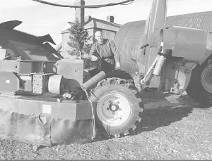 For cutting silage grass, the 8-ft. mower-conditioner works conventionally. To cut and load fresh forage to feed to cows, the conditioner hood is taken off and a blower bolts in its place. Cut grass is shifted by the unit's modified flywheel to a forage wagon towed behind.