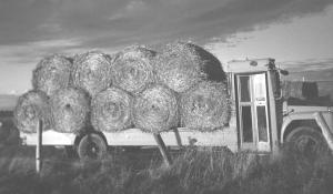 He bought the bus from his local school board. The first step was to cut away the body of the bus right behind the driver's seat. He left the outside body walls 3 in. high so the loaded bales tip inward. The front "cab" was then sealed off with plywood that's reinforced by an angle iron frame. A steel frame welded to the back of the bus helps hold the rear bales in place. The only other thing he had to do was to rewire the rear taillights, turn signals, and brake lights.