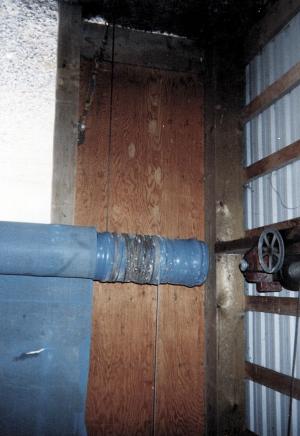 The door measures 56 ft. wide by 19 ft. high and is raised and lowered by a silo unloader winch that's hooked up to a 1 hp electric motor.