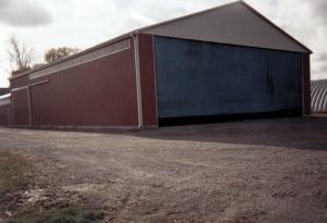 "If we could do it over we'd probably buy the screen all in one piece instead of putting up three sections and overlapping them. We made the door 19 ft. high because we need that much height to dump bales off our automatic stack wagon. However, we usually don't have to put the door up to the full height. We can stop the door any place we want.