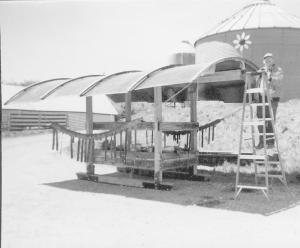 To make the roof, he cut 5 by 9-ft. Harvestore panels in half and bolted the pieces together end-to-end. He bought the silo panels at an auction and paid $10 apiece for them.
