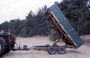 Two pins at the rear of the trailer control the direction of dumping. To dump straight back you leave both pins in. To dump to one side you simply remove the pin on the opposite side.