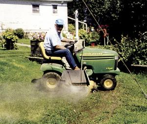 "To clean the mower deck, I turn the water on and drive the mower over the sprinkler," says Larson. "I engage the mower blades and the water does all the work.
