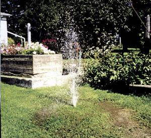 He simply buries a length of garden hose under the lawn and runs it over to a spike-type sprinkler head that's buried in the ground.