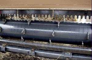 The sliding plate with the knives on it has five different settings for various lengths of cut. "You can make a finer cut for cows and a coarser cut for bedding. The sickle knives can be completely removed from the discharge area if fine cutting isn't required. This machine isn't designed to throw bedding material out 60 ft. like some other machines on the market. However, it can be used to lay down bedding material evenly at short distances, up to 20 ft., and in confined spaces such as barns and corrals."