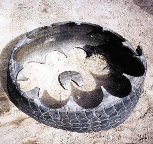 He cuts the shoes out of the tire sidewall. "This leaves the tire tread intact and when you spread it out flat you have a nice piece of tread about 7 ft. long which can be used for other things around the farm," says Baldwin.