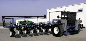 Follmer designed the planter with help from Don O'Neall, a Downs, Illinois, farmer, who has helped him develop other equipment in the past. Their plans are to sell 12-, 16- and 24-row versions. The 16-row version is under 10 ft. high and folds to 14 1/2 ft. wide for transport.