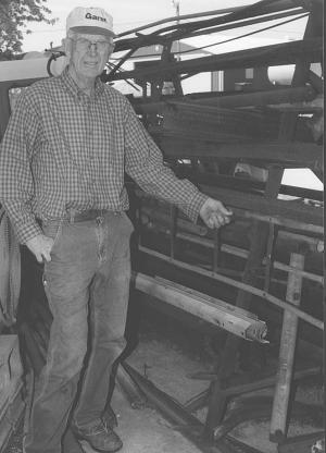 To store steel rods and gas pipes, Hicks took an old harrow, backfolded it and welded it into that position. It's an inverted "V" with harrow spikes sticking out. It gives him plenty of storage space for metal rods, angle iron, and other odds and ends. It's easy to see what's on there, he notes.