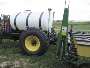 "We can plant up to 60 acres without refilling the liquid tank or the seed boxes," says Peterson, "which gives us a lot of capacity. The cart is easy to pull, easy to maneuver, and easy to plant with," he adds.