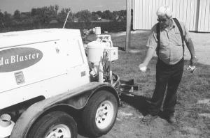 Charles and Alice Klein of Columbia, Ill., are proud owners of a SodaBlaster, a trailer-mounted cleaning machine which they bought last spring. They like the way it cleans vintage tractors which have been subject to years of neglect. The Kleins are serious collectors owning many antique tractors and cars. They use their SodaBlaster mostly to restore their own tractors, but also have a thriving sideline business doing work for others in the area.