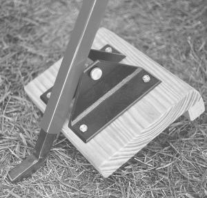 The unit comes with a 6 1/2-ft. long handle, made from high carbon rectangular steel tubing, and is equipped with a 4-in. long hook at the bottom. The handle pivots on a bolt that goes through a pair of metal brackets and through a short length of pipe that's welded to the handle. A wood base braces the tool on the ground without sinking in.