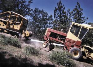 My hay field is on top of a steep hill and the access road to it is too narrow for my swather. In the past, I always had to use a chain to tow the swather behind my Cat dozer to go up the road. On the way down I'd have to put the Cat behind the swather and let it down slowly to keep it from running away. I had to ask one of my neighbors to either drive the Cat or ride in the swather and steer it. It was often hard to find someone to help, plus it was somewhat dangerous.