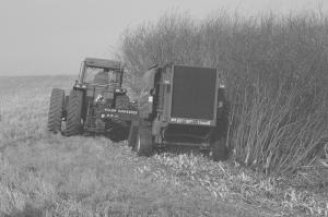 "We harvested in the fall when all the leaves were shed. It took an average of two minutes to produce a 48-in. dia. bale. They handle in the same way as regular bales and store well," PFRA manager Bill Schroeder says.