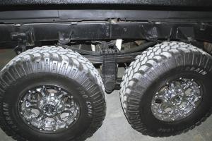 Loughery stretched the frame and welded two short beds to make the extended box. He added an axle ahead of the original rear axle and installed a military bogie style suspension, adding three leaves to the existing leaf spring set. The splitter, which he had fabricated by a custom shop, powers the rear axle with a custom made drive shaft.