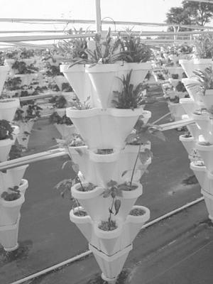 The 4 1/2-ft. tall hydroponic planters are planted with about 15,000 strawberry plants. Yields are tremendous, and customers at the pick-your-own operation like to be able to pick berries from a standing position.