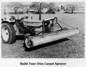 Build Your Own Carpet Sprayer SPRAYING New Sprayers 3-3-20 If you've considered building one of those rolling carpet-type herbicide sprayers that have stormed the market, you'll be interested in do-it-yourself construction plans which the Canadian Research Center at Centralia College, Huron Park, Ontario, Can., will send "free for the asking" to interested FARM SHOW readers.