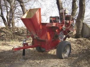 Steve's grandpa, Lloyd Litchy, previously had built a wood chipper out of a silage chopper that was featured in FARM SHOW (Vol. 33, No. 6). It was a stationary model, belt-driven off a Simplicity 18 hp garden tractor. Steve and Randy's model is mounted on a pair of trailer wheels, allowing them to pull it around with a garden tractor.