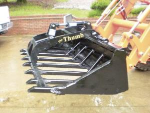 The grapple arm is a 36-in. long commercial unit called the "Thumb" that he bought from Greens Machine of Centralia, Ill. (ph 618 532-4631; www.greens-machine.com). It came complete with mounting bracket, grapple arm, and hydraulic cylinder. The grapple arm can either be welded or bolted in place.