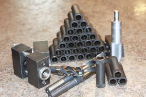 The kit he developed includes a 2-piece drilling jig that's used to drill through the hole, and the hardened bushings. The bushings are driven into the worn-out holes in the mounting lugs using a simple driving tool that Craft designed.
