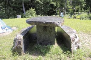 Bedard uses the rocksaw to make boulders into picnic tables, benches and tabletops. He also slices stone into flat pieces for doorsteps, patios and walkways. With the addition of a new motorized jig, he can even use it like a giant lathe, cutting perfect circles out of stone.