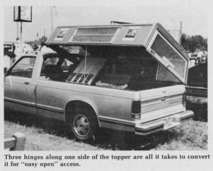 "With a hinge kit on your truck topper you can easily get at cargo in the front of the pickup bed without having to crawl into the truck on your hands and knees," says Gale Harsha, Kellogg, Iowa, manufacturer of a new hinge kit for pickup toppers.