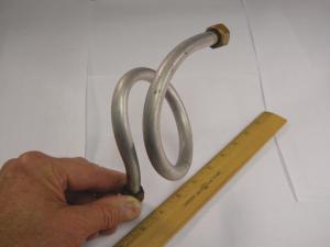 “I once had to replumb the exhaust tube on an air compressor. The space was too tight to bend a simple elbow and still get the necessary insertion into the compression fittings on both ends. To get flexibility through length, I coiled a length of aluminum tubing as shown in the photo. I crimped one end of the tube closed, packed it full of extremely fine grain sand by tapping the crimped end on a bench vise, and then crimped the other end so the tube was tightly packed with sand. Wearing insulated gloves, I heated the packed tube with a propane torch and slowly fashioned it into a coil. The extra length in the coil gave enough flexibility to hook it up.”