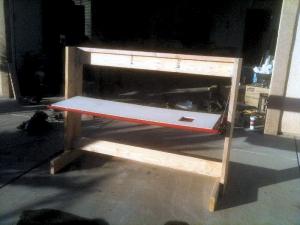 Chevy Pickup Desk FARM HOME Furniture My dad made this desk for me as a Christmas present this year It’s a tailgate from a 1967 Chevy pickup He restored the tailgate and then designed a wood frame to hold it The tailgate pivots down for work supported by two short pieces of steel cable He attached a flat writing surface to the back side of the tailgate This desk will probably last me forever and will end up in my garage some day when I’m old enough to have one Johnny Forcht Pahrump Nevada