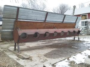 Fett looks for grain drills that are at least 10 to 11 ft. long. That lets him position at least 8 feeding stations on one side and 7 on the other. He strips away everything but the bare box with its cover and the hardware that attaches it to the frame. The rest goes for salvage at or above the price that the entire grain drill would bring.