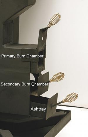 The burning chamber is made of heavy-wall square tubing. The pellet stove has a 75 percent efficiency rating with deflectors and a heat shield to direct heat to flow from the front. The back of the stove is cool enough to be within 2 in. of a wall.