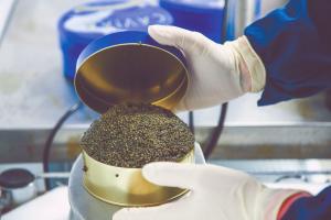 Size is important. The fish — Russian, Siberian and Atlantic sturgeon — don’t produce caviar until they are at least 7 years old and weigh 20 to 40 lbs. After sonograms (to confirm eggs) and biopsies (to confirm egg size and firmness), it’s a one-time harvest with females producing 2 to 4 lbs. of caviar. That’s why caviar is so expensive, at about $590/lb. wholesale.