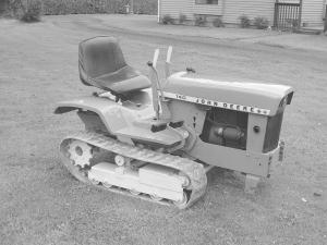 Manlift Tracks Get New Life As John Deere Crawler TRACTORS Conversions When Bob Gauntt had the opportunity to buy an old Chinese-built manlift with a bad motor he couldn’t pass up the deal It was cheap and he wasn’t concerned about the motor; he wanted its tracks As a long-time collector of John Deere tractors he has wanted to build a Deere tracked tractor for a long time But the tracks were just half the battle He needed a riding mower with individual rear brakes in order to properly steer the tracks A John Deere 140 fit the requirement He detached the blade and wheels and made a sprocket prototype to slip on the back axle to turn the tracks Once he got it right he had a local machine company make the sprockets “I shortened up the fenders so they didn’t hit the tracks ” Gauntt says “And I cut the track mounting setup with a plasma cutter to narrow it to fit ” He added brake and steering levers painted everything Deere green and yellow and mounted it so that it comes off easily and the wheels can be put back on It’s likely he won’t do that as the JD crawler is popular at shows “It’s pretty smooth and steers pretty good on dirt and gravel and grass ” he says Gauntt is pleased with how well it turned out and notes he just got lucky finding the inexpensive manlift that worked for the project Contact: FARM SHOW Followup Bob Gauntt 20921 NE 58th St Vancouver Wash 98682 ph 360 892-3733; unstyledl@yahoo com