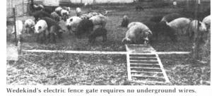 "A key feature of the electric model gate is that it requires no under-ground wires," says Wedekind. "It has been my experience that most gates that use underground wire aren't very effective after a few years. One of the main reasons is that the constant pulsating of an electric fencer causes the underground wire to short out after a period of time. Instead, we use above-ground wiring."