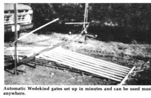 That's how Donald Wedekind sizes up the new spring-operated, drive-over gate which he designed and is now manufacturing commercially. "It can even replace conventional cattle guards," says Wedekind, who offers a choice between an electric fence model and a non-electric model.