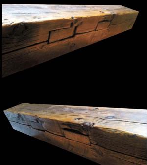 Maringer sells a lot of wood as flooring and wall covering, but the most popular item at this time is beams for fireplace mantles.