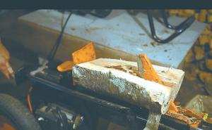 Walter Rodler hopes to prevent thousands of injuries every year while also improving performance of every kind of log splitter with a new knife-style “shear” that slices through logs without throwing them out to the sides like a conventional splitting wedge.