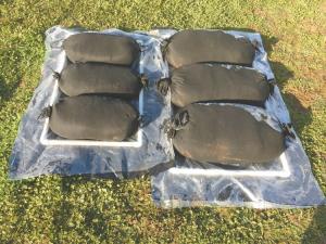 The smallest sacks are 8 in. dia., 3 ft. long and weigh about 35 lbs. with soil that has been watered. They’re ideal for herbs and greens and shallow-rooted flowers and vegetables. The largest sacks are 15-in. by 4-ft. and are large enough to grow crops such as corn and beans.