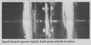 Lawrason says any farmer who owns a seed drill equipped with press wheels understands the problem. After a bit of use, the wheels begin to work loose because of inadequate spacers between wheels. "The more you tighten them up, the more the wheels wear. As a result, spacing is off, the wheels wear unevenly, the drill pulls harder, and you have to keep tightening them up," says Lawrason.