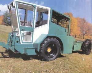 In PRO III, Collins set the cab forward with the engine under and to the rear on the front half of the tractor. That leaves the entire rear half available for use as a flatbed, dump box, or log bed.