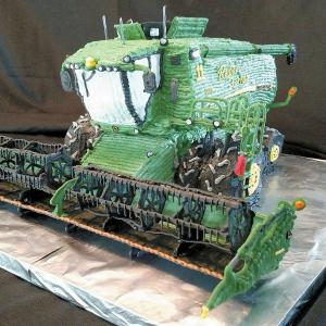 The cake was baked and decorated by his father, Eric Reiber, a fire department captain in Pullman, Wash. The big cake has an 18-in. header and it took 15 lbs. of sugar to make. He makes large amounts of sugar frosting to form the combine parts. In the past he also made a Deere excavator complete with a bucket, thumb, and hydraulic cylinders. A Case field cultivator he made for his own birthday took 6 weeks and “was the monster that overtook our life,” Reiber laughs.