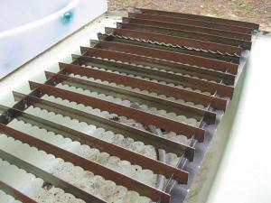 He started with a 5-ft. long, 32-in. wide tub. He cut up a 1-in. angle iron bed frame and welded it together at the corners to make a frame, which friction fits to the top of the bathtub. He used a 14-in. abrasive chopsaw to cut a series of 3/16-in. wide, 1/2-in. deep slots into the frame, spacing them 2 in. apart. Then he cut up an old bandsaw blade into 18-in. lengths and inserted them - cutting edges down, into the slots to form the table’s working surface.