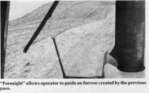 Here's a new low-cost way to guide your tractors and implements more efficiently through fields without using markers or looking backward. Called Foresight, the device allows the operator to monitor his path by looking forward and aligning the Foresight flag to the furrow made by his last pass.