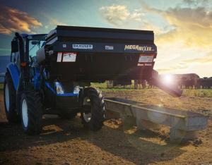 The Mega Mixer has a 3/4 cu. yd. capacity, but that can be stretched to a full yard with an optional hopper extension. The motor requires a 25 gpm, 3,500-psi hydraulic system.