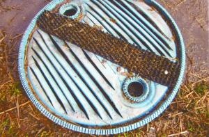 He used a cordless circular saw equipped with a 4-in. blade to cut off the top 3 in. of the barrel, then made a series of cuts about 3/8 in. apart around the rim and bung holes. He also made a series of long parallel cuts about 1 1/2 in. apart in the lid and turned them into “louvers”. He used a propane torch to heat the ends of the cuts, then used a vise grip to bend them and hold them in place until they hardened. He also cut a 2-in. wide strip out of a truck mud flap and used a couple of carriage bolts to fasten it onto the lid, bristle side up.
