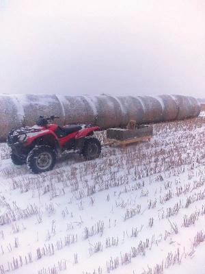 “I use it for trapping and for hauling newborn calves during the calving season,” says Haak. “I used 2 by 4’s and some lightweight wood panels to build it. There’s a compartment on front for storing tools, medicine, and blankets. A small hitch on back can be used to pull a second sled at the same time.”
