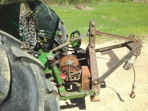 Rhoades took the braces off the plow and bolted them together in the classic V-shaped arch using spacers for the top link arm. He added pegs for the lower arms and a triangular boom to the rear, also fabricated from plow framework.