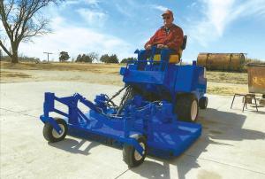 Back in 1990 Don Robinett, Randall, Kansas, built a riding mower powered by an all-aluminum Buick V-8 gas engine (Vol. 18, No. 3). He’s now 88 years old but still uses the machine regularly, and recently had it professionally repainted “Ford tractor blue”.
