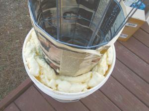 Insulating Buckets Over Outdoor Faucets Keep Them From Freezing FARM HOME Miscellaneous John Daugherty Gray Ga : “Here’s how I made some insulating buckets to put over our outdoor faucets in the winter to keep them from freezing I bent some wire into a cylinder taped some newspaper around it and put it in the center of a 6-gal bucket I then used a can of insulating foam sealant used to seal large cracks and filled in the bucket around the wire Once it hardened I took the wire out That way the middle is hollow and I just set the bucket over the top of the faucet instead of letting it drip or wrapping it with towels or blankets This has worked well for 3 winters here in Georgia ”