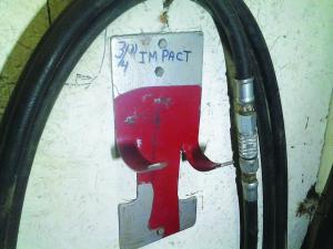 Wall-Mounted Air Tool Rack FARM SHOP Miscellaneous Thanks for the article in your last issue on my wall-mounted air tool rack Here’s a photo of another metal bracket I made for my 3/4-in air wrench The bracket is mounted on a wall in my shop next to a door that leads to my 50-gal air tank The 13-in long 6-in wide bracket has 2 curved metal tabs on each side of the wrench handle that cradle the wrench An air hose hangs neatly on a peg above the bracket The wrench bracket comes in handy for changing the big bolts on my tractor’s dual wheels and for other jobs I painted a red outline on the bracket to remind others where the wrench belongs when not in use John Lubinski; jjlubinski@yahoo com