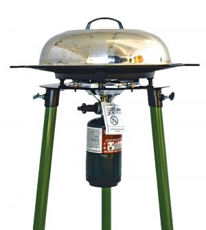 The TemboTusk Skottle grill with adjustable leg kit checks in at $395. It offers an 18-in. grill plate without a lid, but also comes with a 10,000-btu burner.
